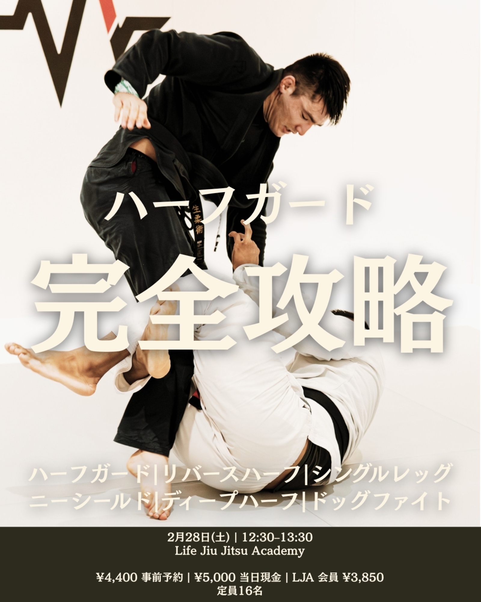 柔術で頻繁に使われ、同時に厄介なポジションの一つがハーフガードです。本クラスでは、実戦で使える高確率のハーフガード攻略法を分かりやすく解説します。